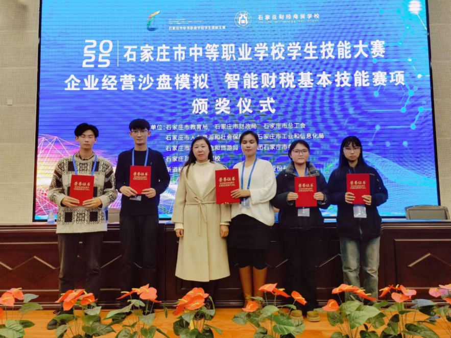 11月7日,在石家庄市财经商贸学校举办的“企业经营沙盘模拟”赛项中,由会计2329班张炜芸、会计2430班戎琳璠、郭田静、齐子聪组成的参赛团队沉着冷静、精准决策,最终荣获团体三等奖。指导教师张旻捷、沈莉娜全程悉心指导,为团队取得佳绩提供了坚实保障。
